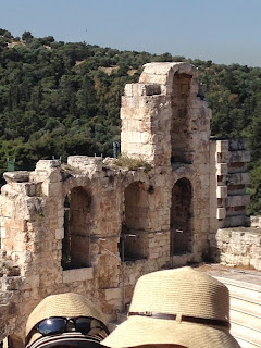 A, is for Athens and the Acropolis, and when pushed, I tell people the Acropolis was my favorite site on the entire trip, and Athens is the only city I wish I’d seen more of. The Acropolis refers to the flat top of the very large hill, and on top of that hill sit remains of many buildings, the largest being the Parthenon. But I also enjoyed the Temple of Athena and the Odeum of Herodes.